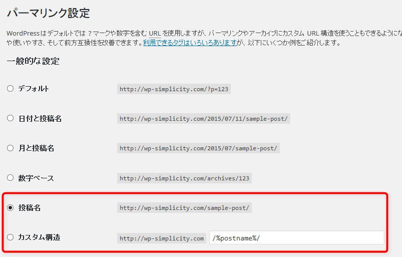 にならないです…Simplicityの場合のパーマリンクの初期設定はなにだったのでしょう??