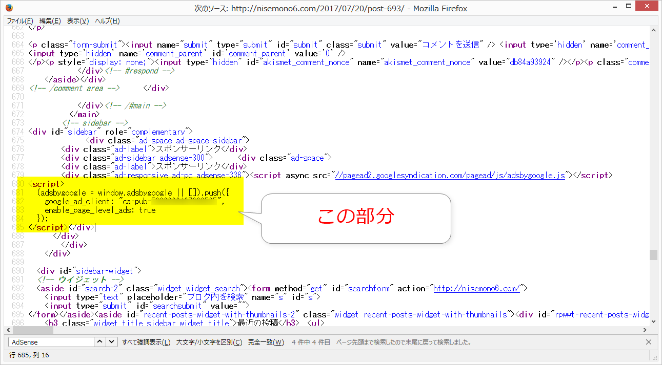 AdSenseの審査コードがまだ、入っている場合は、コードを取り除いてみてください。