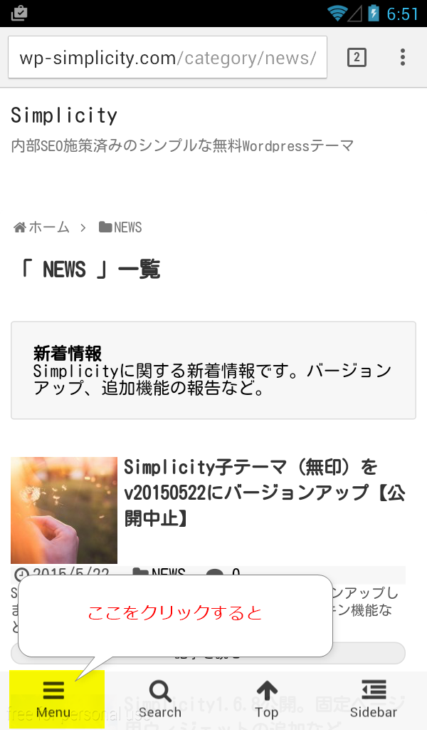 どなたか、iPhone実機を持っている方は、このSimplicityサイトのスライドインメニューボタンの動作を確認していただけると助かります。